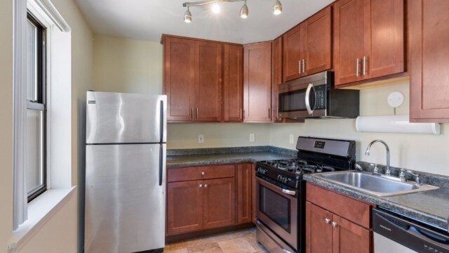 - Updated kitchens with dark cabinets & stainless steel appliances
